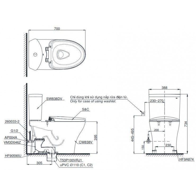 Mã sản phẩm: Bồn cầu 2 khối TOTO nắp rửa cơ Eco-washer